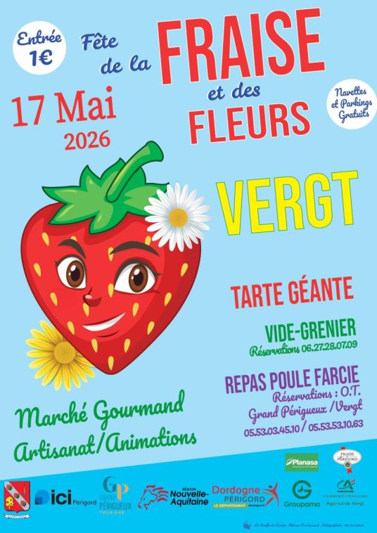 Bonne humeur et convivialité pour la 24ieme fête de la fraise et des fleurs à Vergt le dimanche 17 mai. Fraisiculteurs et producteurs locaux feront découvrir leur savoir-faire au cours de cette journée festive.